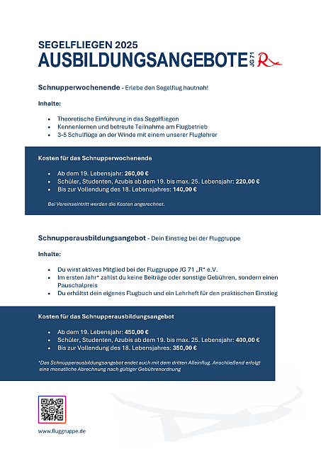 Dieses Jahr bieten wir euch wieder die Möglichkeit zusammen mit uns in die Fliegerei hineinzuschnuppern.