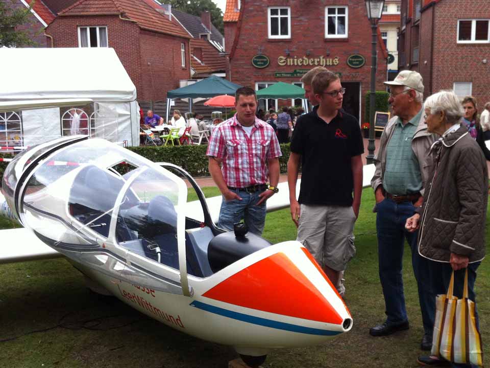 Neben zahlreichen Vereinen aus dem Landkreis Wittmund waren natürlich auch wir auf dem Bürgermarkt in Wittmund vertreten. Viele Besucher nutzten dabei die Möglichkeit uns einmal persönlich kennen zu lernen. Unterstützt durch unser ausgestelltes Segelflugzeug (Grob Twin II) konnten wir in interessanten Gesprächen eine Menge Wissenslücken, hinsichtlich der Sportfliegerei, schließen. Die Beratung der "Fluginteressierten" kam dabei natürlich nicht zu kurz. Wir freuen uns schon sehr auf das nächste Jahr!