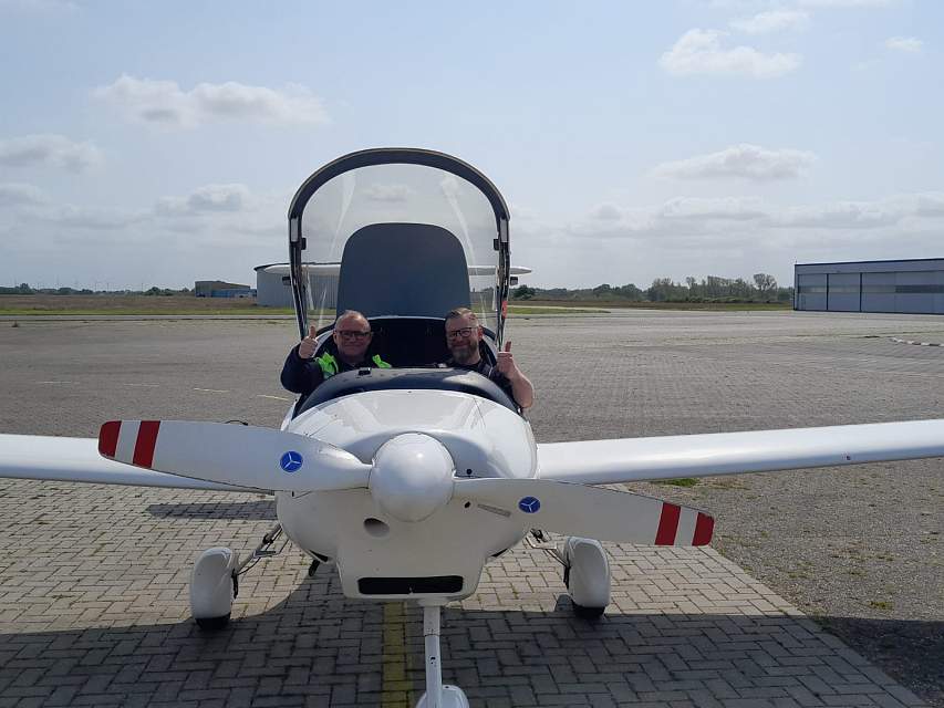Du erhältst einen ersten Einblick in den Ablauf des Flugbetriebs und hebst mit einem erfahrenen Fluglehrer zum ersten Flug ab.