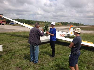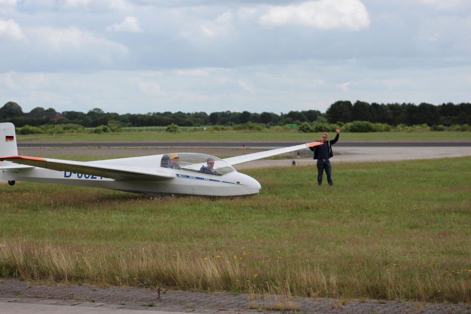 Datei "" in der Kategorie "" nicht vorhandenAlles Gute zum ersten Alleinflug wünschen wir unserem Flugschüler Jörn Tjards. Bei bestem Wetter legte er am 12. Juli drei wunderbare Landungen hin. Herzlichen Glückwunsch! Auf dem Bild ist der stolze Fluglehrer Arndt Deyerling bei der obligatorischen Straußübergabe zu sehen. Bis zum eigenen Segelflugschein darf sein Schützling nun, unter der Aufsicht eines Fluglehrers, eigene Segelflüge in Platznähe durchführen.