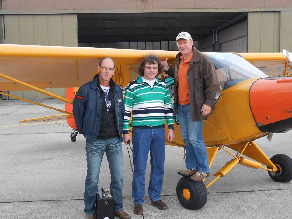 Unter sehr widrigen Wetterumständen musste Thomas Meiners (mitte) am 28. September bei Prüfer Christoph Talle (links) zu seiner praktischen Prüfung für den erhalt seiner Motorfluglizenz antreten. Trotz erschwerter Bedingungen bestand er seine Prüfung auf anhieb. Unser 2. Vorsitzender Thorsten Uekermann (rechts) war der erste der seinem ehemaligen Motorflugschüler gratulierte.
