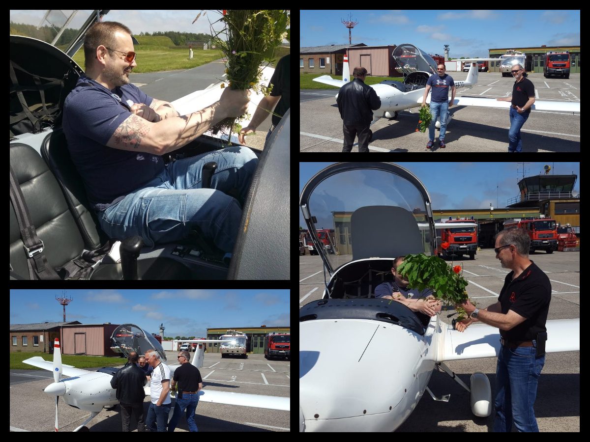 Hier seht ihr ihn direkt nach der Landung in Wilhelmshaven zum Ende seines Prüfungsfluges.