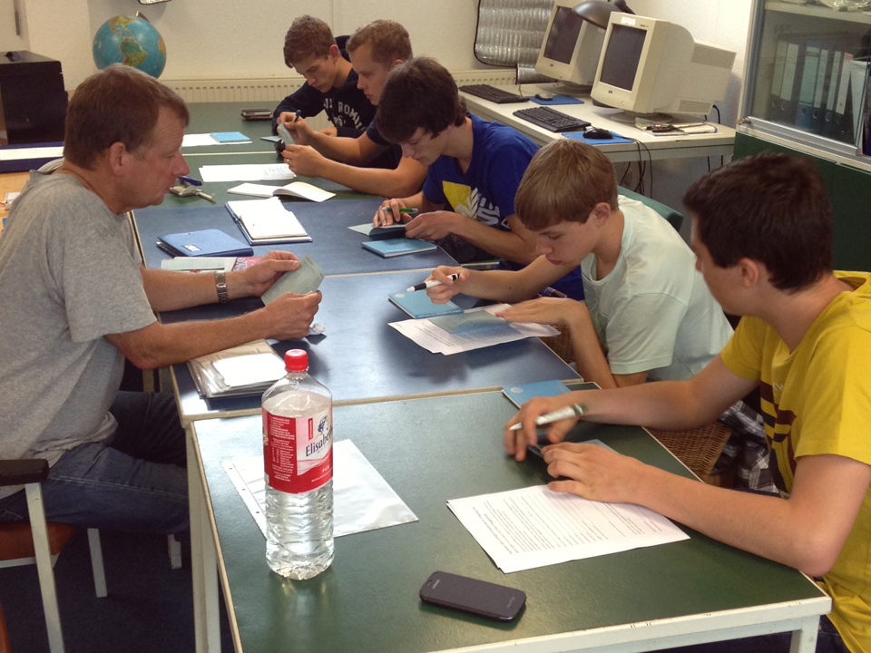 Es ist wahrlich nicht die beste Zeit um mit der Segelflugausbildung zu beginnen, trotzdem fanden sich zum Saisonende fünf neue Flugschüler die sich der Herausforderung stellen wollen (Es gilt: Besser zu einem ungünstigen Zeitpunkt anfangen jetzt als nie). Auf dem Bild seht seht ihr wie Ausbildungsleiter Arnd Deyerling seine fünf neuen Schüler in die Theorie des Fliegens einführt. Solch eine Kleingruppenbetreuung findet man selbst an renommierten Flugschulen nicht, sonder NUR bei uns ;-)
