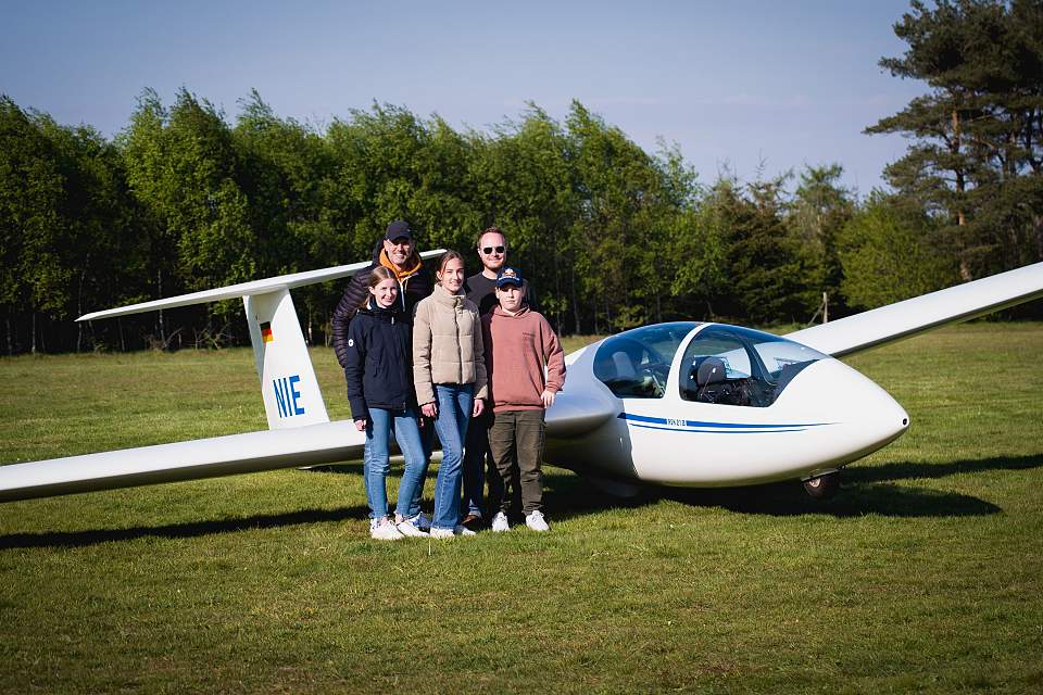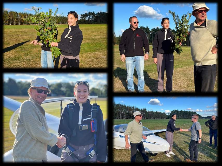 Auf Grund des schlechten Wetters zog sich die Ausbildung länger als gewöhnlich, aber nun hatte das Wetter endlich ein Einsehen. Nachdem sie einige Übungsflüge mit Ausbildungsleiter Arnd Deyerling absolviert hatte, wurde sie noch einmal von Fluglehrer Wilko Brayer überprüft. Danach startete sie zum ersten Mal allein in den ostfriesischen Himmel. Nach drei erfolgten Starts und Landungen mit dem Schuldoppelsitzer ASK-13 gratulierten die Segelfliger der Fluggruppe zur bestandenen A-Prüfung.