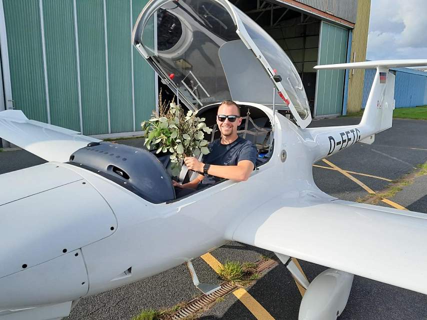 Hier seht ihr ihn direkt nach der Landung in Wilhelmshaven zum Ende seines Prüfungsfluges.